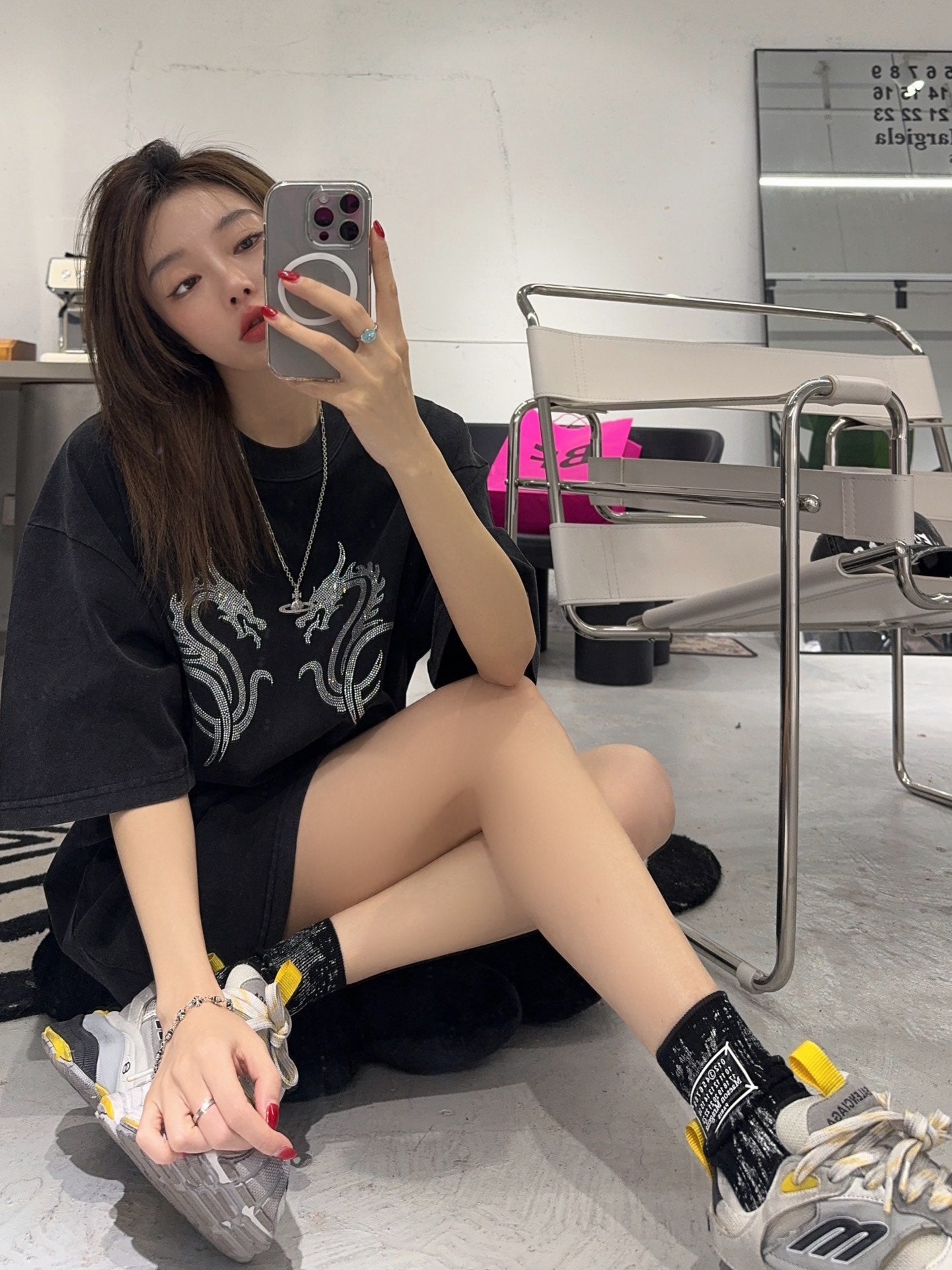 alexanderwa** Dragon ๐ limited edition new Ssangyong hot diamond heavy washing short-sleeved T-shirt