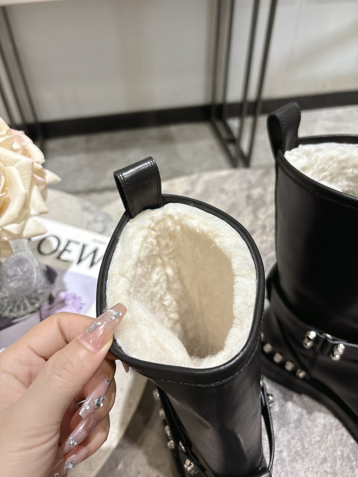 Retro Heavy Metal Style, a must-have for girls in winter, made of black calfskin, with a thick mid-heel design, the splicing of metal rivets and leather on the upper looks particularly noble and refuses to collide with other styles❌