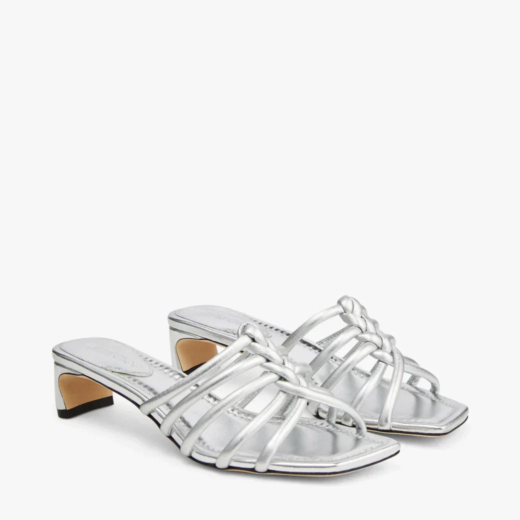 J**C* new silver metallic leather mules