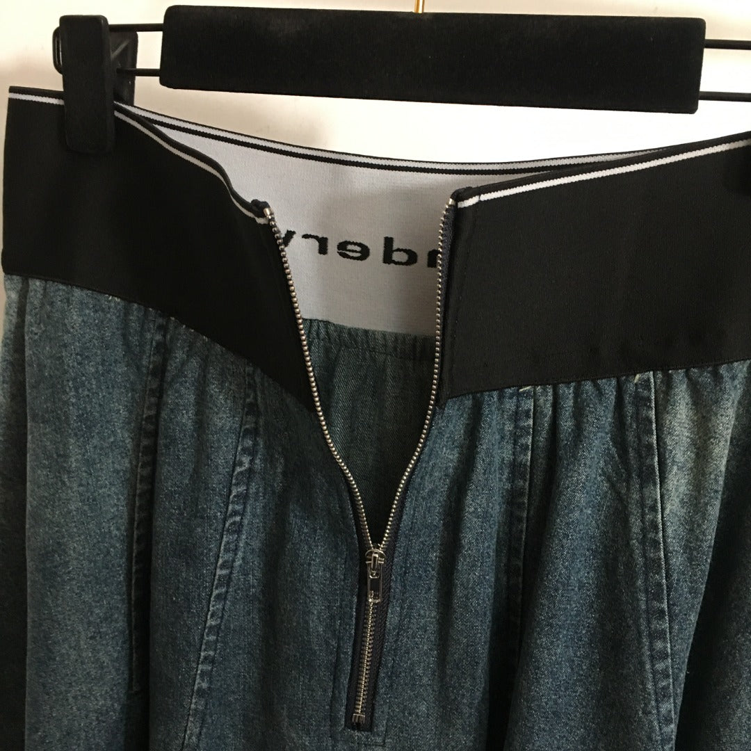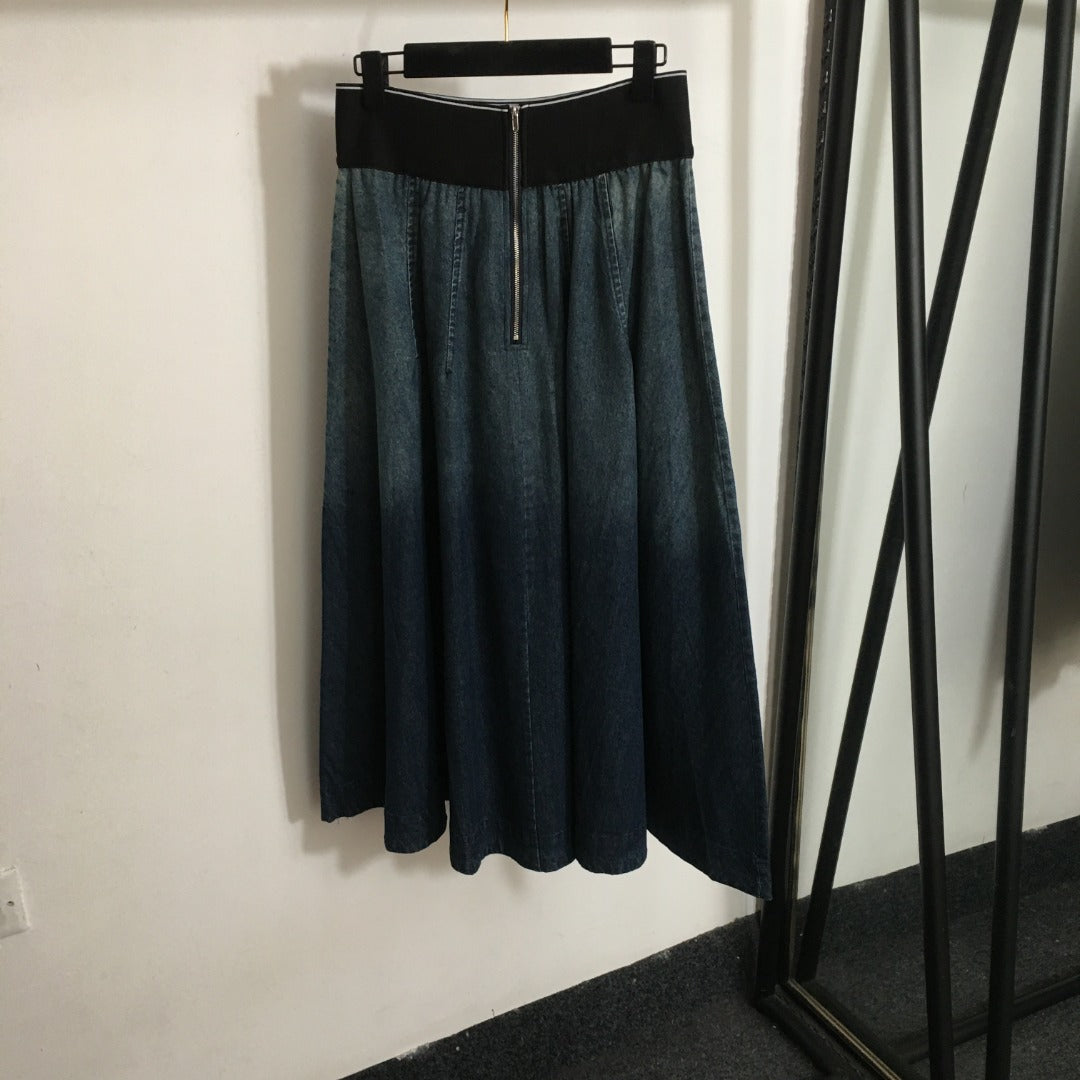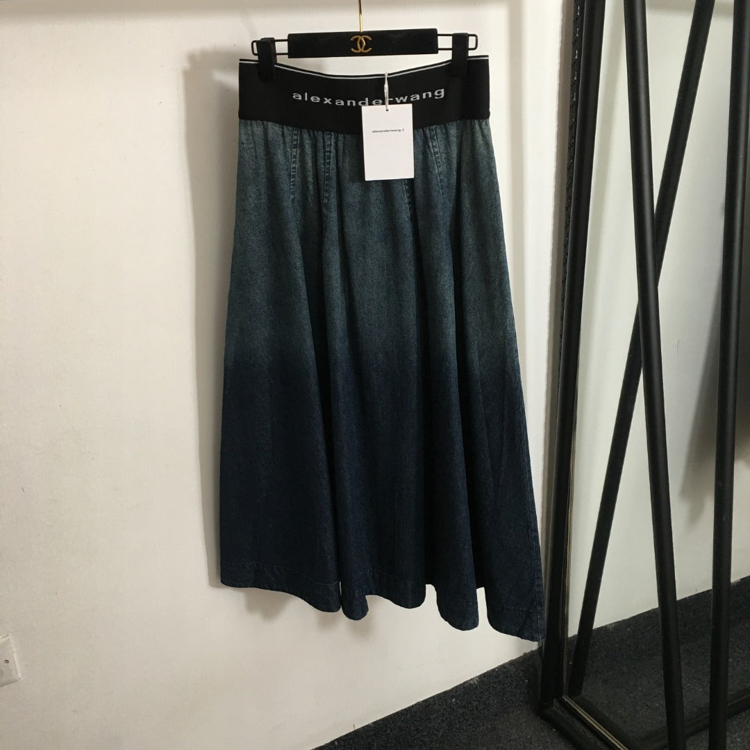 WA 24 letter webbing elastic high waist gradient denim skirt